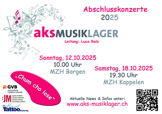 Das AKS Musiklager 2025 bereit Geschichte und wir freuen uns euch an unseren beiden Abschlusskonzerten in Bargen und Kappelen Willkommen zu heissen.